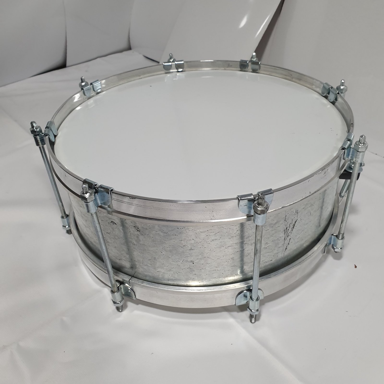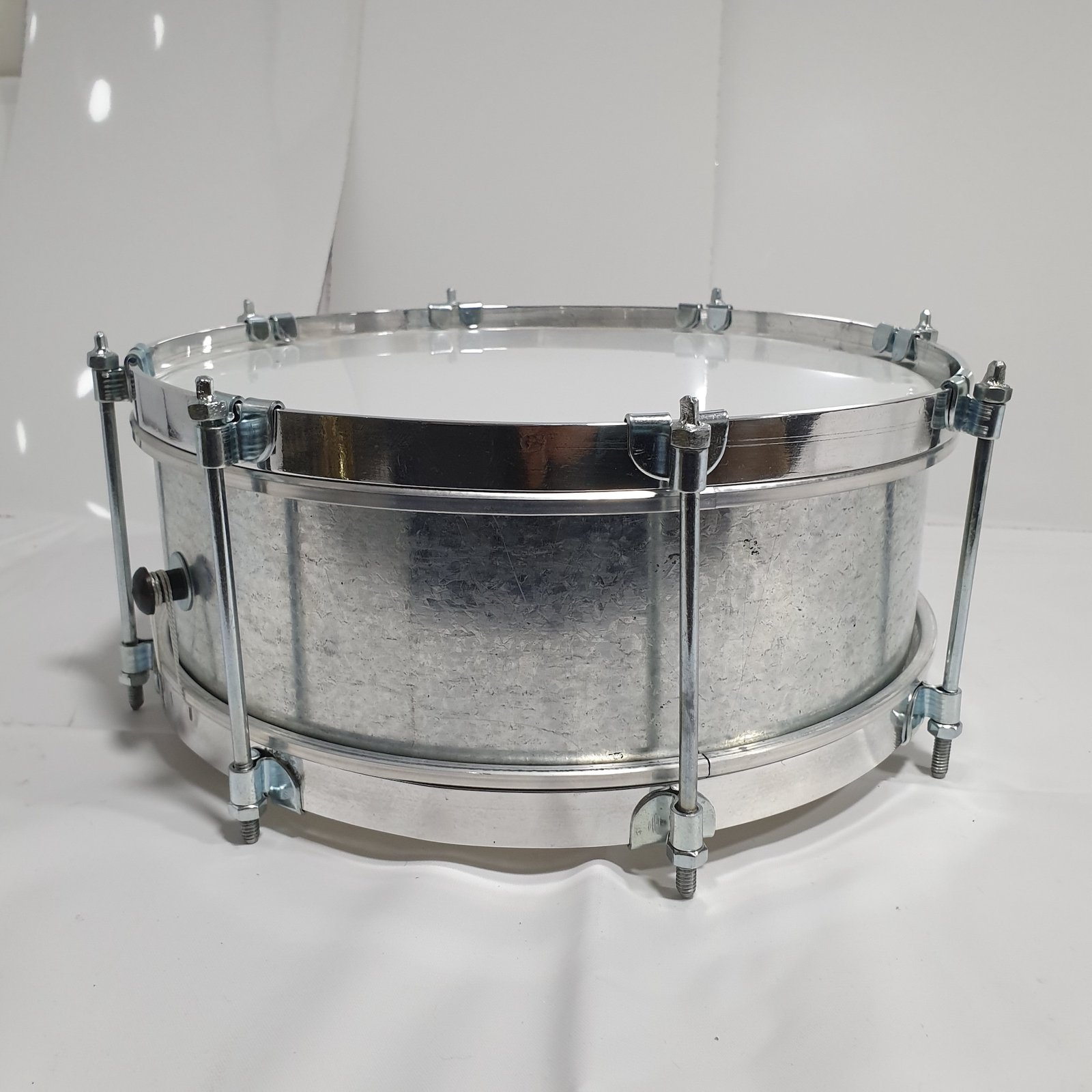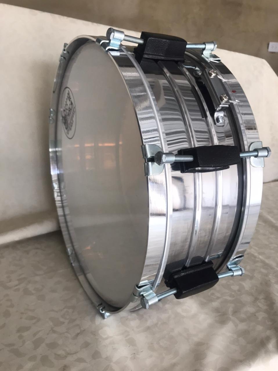 Su estructura con vaso en madera, aros y herrajes en aluminio, y parches en nylon, proporciona un desempeño confiable y una respuesta adecuada para interpretaciones de marcha y presentaciones musicales.
